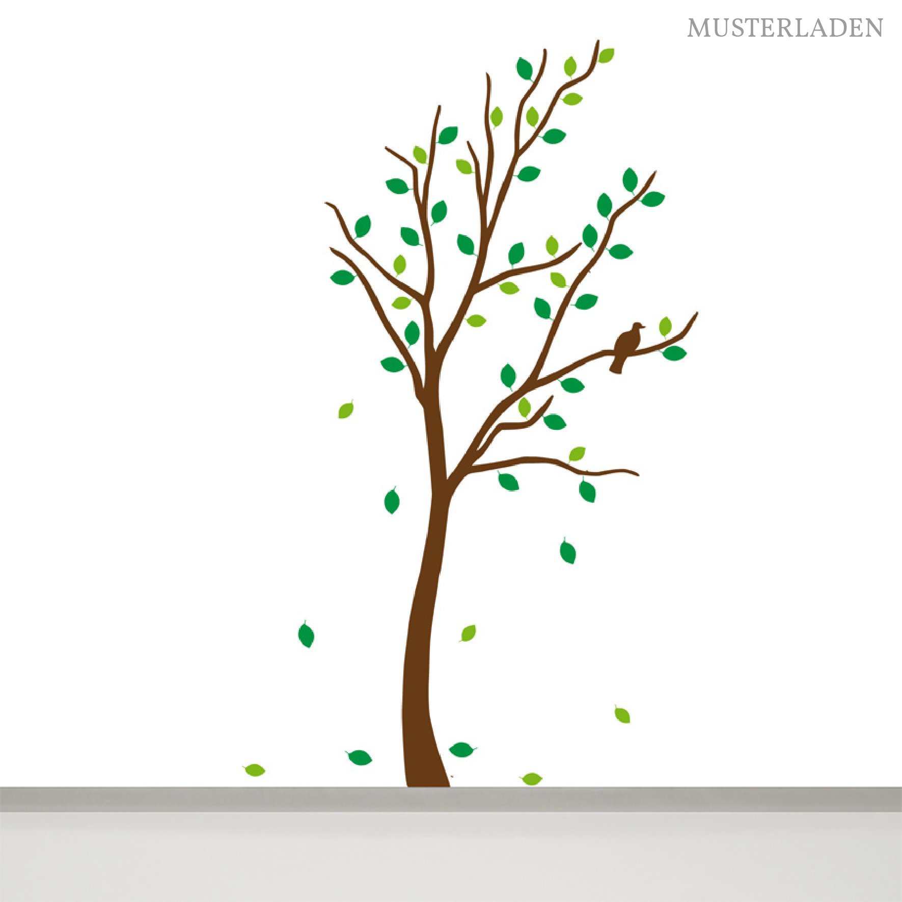 Baum Wandtattoo mit Vogel und 60 Blättern